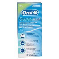 Oral-B super floss mint 50 pieces pre-cut is ideal for braces, bridges and wide spaces. Clinically proven to help fight gum disease, it is three products in one: Stiffened end to thread floss under appliances, Spongy-floss to clean around appliances and in wide spaces, and regular floss to remove plaque under gumline.